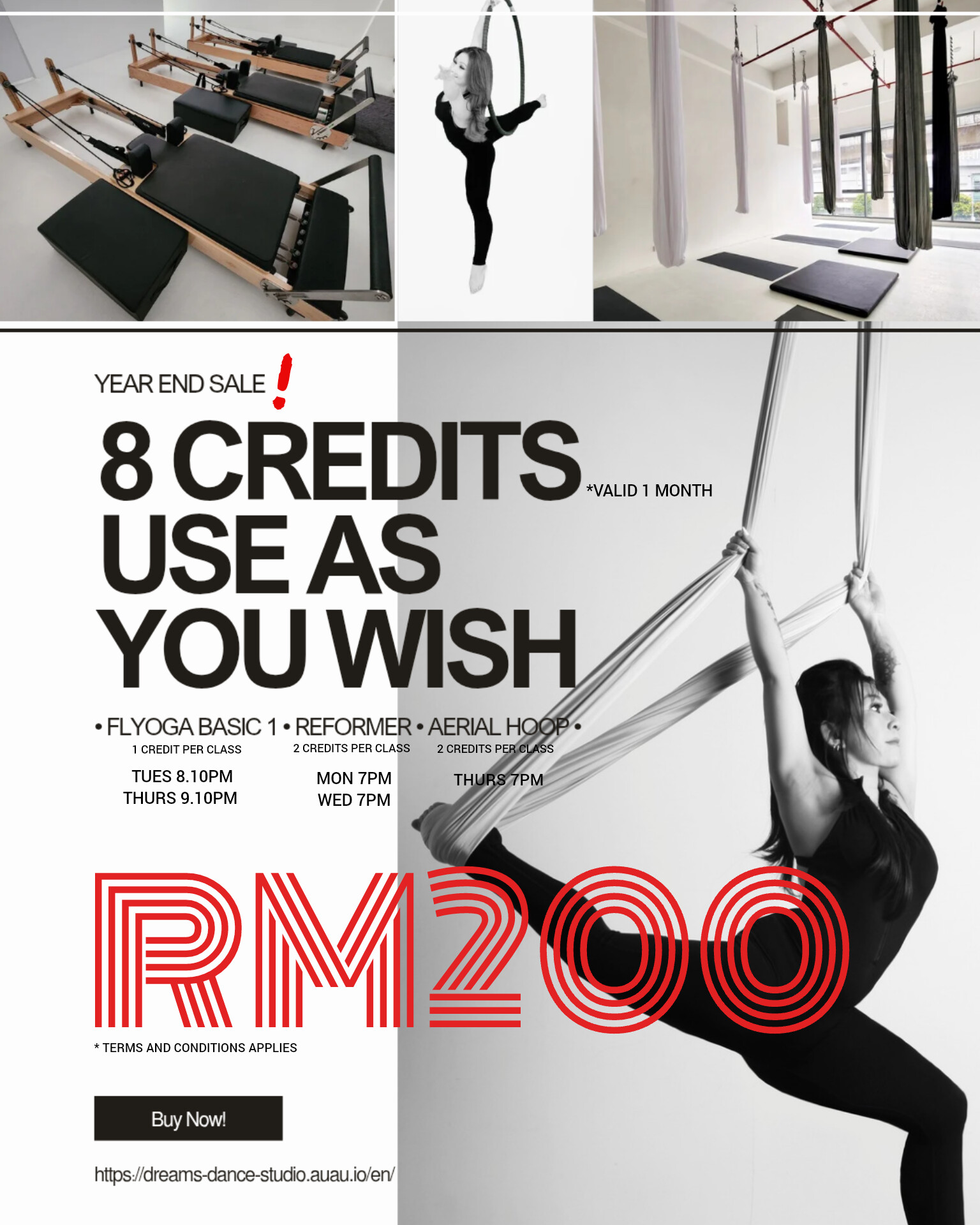 Redeemable for FLYOGA (1 CREDIT) / YOGA BASIC (1 CREDIT )/REFORMER BASIC (2 CREDITS ) group classes.